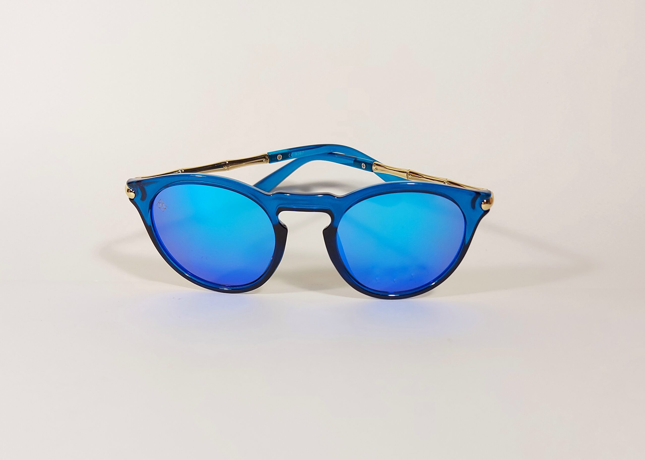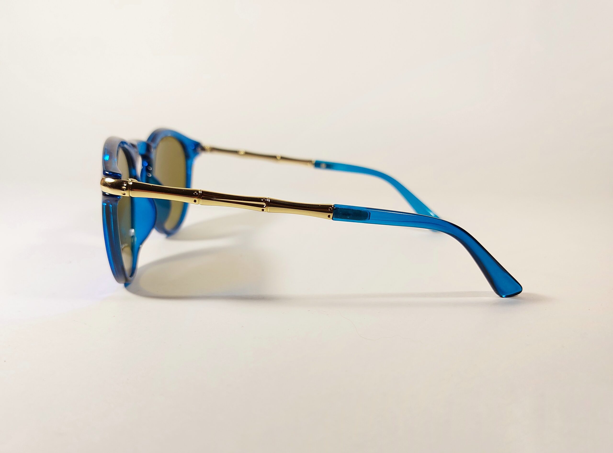 Γυναικεία γυαλιά ηλίου με μπλε φακούς καθρέφτες καλι μπλε με χρυσό σκελετό.  Πολύ μοντέρνα και ανθεκτικά. Πιστοποιημένα από την Ε.Ε. με φίλτρα προστασίας UV400. Συνοδεύονται με τη θήκη τους και το πανάκι καθαρισμού. νούμε